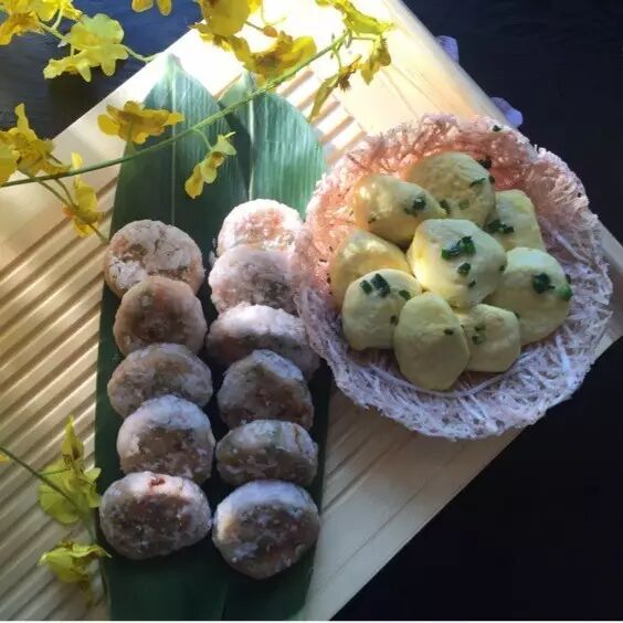 蚬肉味甘性平凉,其味甘香鲜美,代表发财大显,韭菜则是长长久久,而生菜更代表生财,这道渔家蚬肉生菜包寓意特别好。