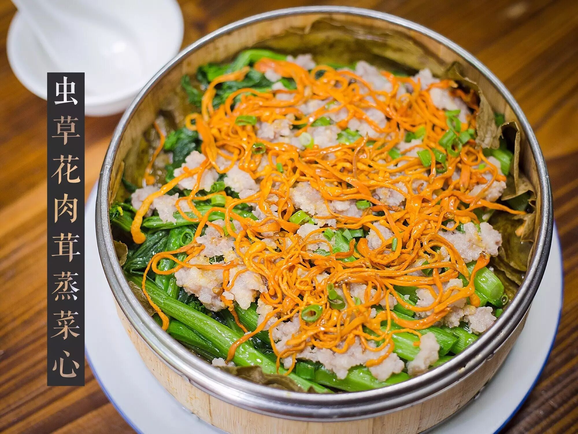 「 虫 草 花 肉 茸 蒸 菜 心 」