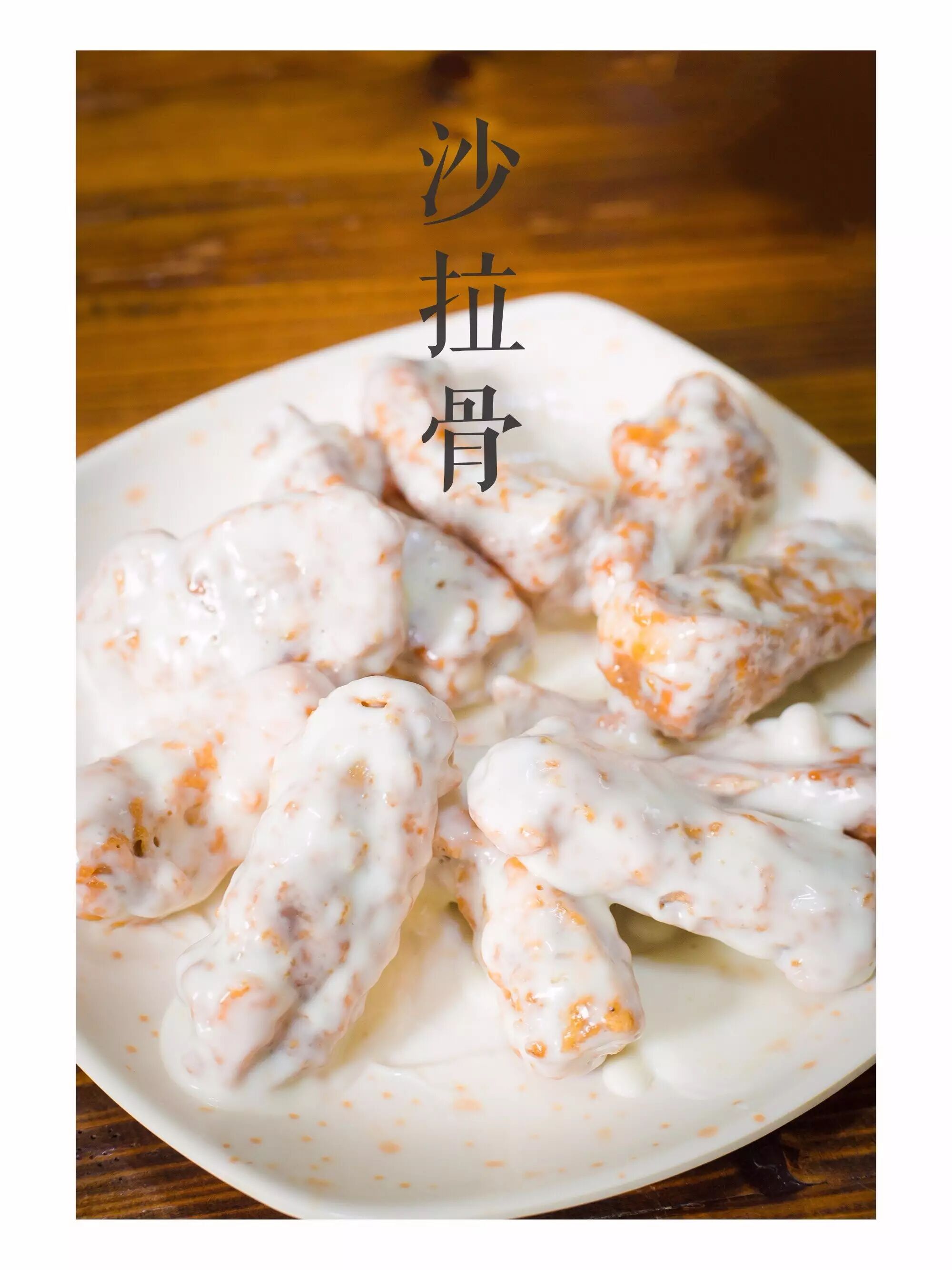 沙拉骨炸得酥香,出面包裹沙拉酱,入口滑溜,酸酸甜甜带骨香,真系中西合璧的产物,女士同细蚊仔的挚爱!