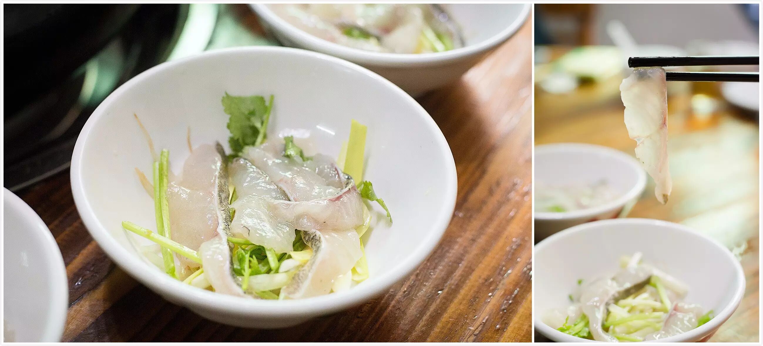 老细话呢个系过桥鱼的汤底,用鱼骨同水蛇骨熬制而成的,将鱼先煎后煮就可以煲出白到好似牛奶咁的鱼汤底,好有营养又唔会腻。鱼身选用无骨的桂花鱼,切到薄薄一片,夹起仲可以透光。