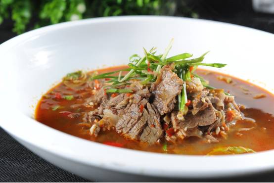 喜欢吃牛肉的朋友他们店里的大片牛肉也是一定要品尝的。和名字一样。牛肉是一大块一大块的,厚度均匀,选用的是新晃的黄牛肉。配上自己炼制的山胡椒油,别样的风味。下面还有一层自家在乡下做的手工红薯粉,q弹有嚼劲。