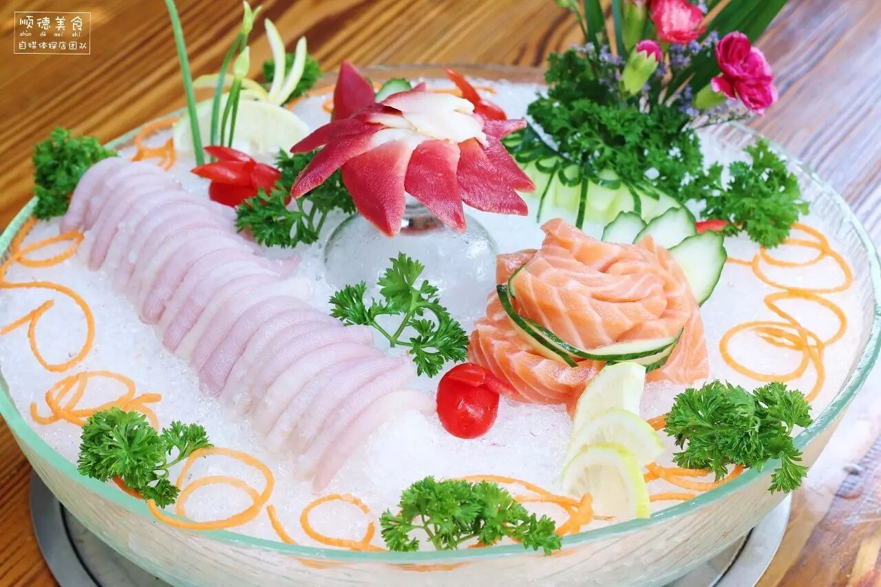 厚切新鲜三文鱼刺身,美如玫瑰,色泽橙黄质感干爽,入口冰爽嫩滑,甘香可口;北极贝鲜甜爽嫩,蘸上柠檬芥辣豉油,口感一流。