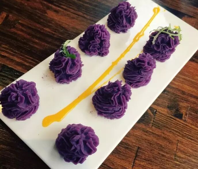 紫薯塔塔造型很好看,就像奶油蛋糕的裱花,口感也不错,紫薯泥很细腻。满满的紫薯泥,中间是柠檬汁,搭配在一起酸酸甜甜。让原本单调的口味立刻丰富了起来。关键才9块钱一份,也太超值了。