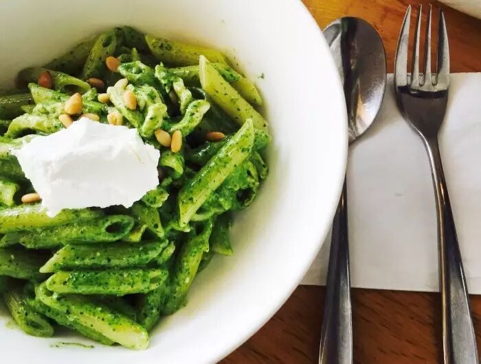 海岸城的沃歌斯是无锡唯一一家门店,十分有腔调,消费偏高档。他家的菜品整体上都十分的绿色健康。香草鸡肉空心粉强烈推荐。首先在视觉就独一无二,绿色的通心粉,很美腻。量也很足,味道酸酸甜甜的很开胃。空心面的口感很好,没有软的感觉,劲道刚刚好。里面的鸡肉也很香,同样沾染了一些酸味,也很好吃。