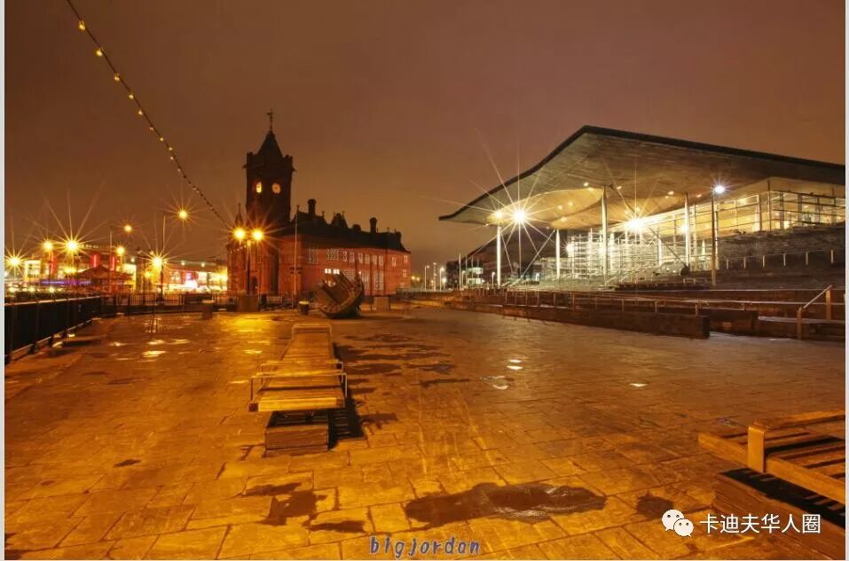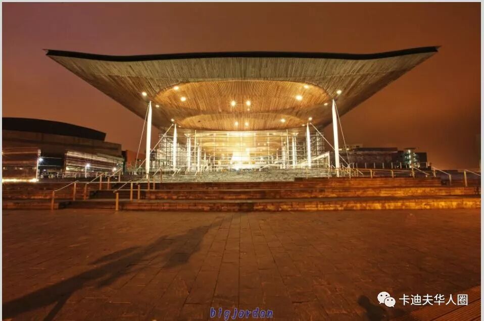 Cardiff Bay 夜景 右侧是Welsh Assembly Building