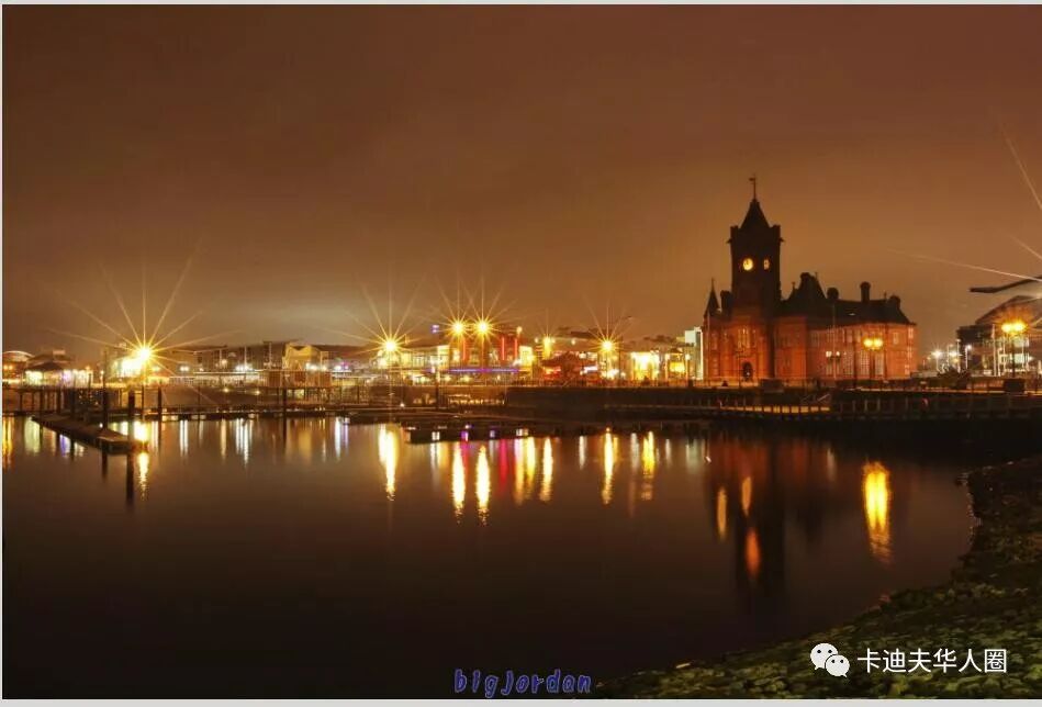 Cardiff Bay 夜景 piering building: 码头大厦(红色建筑充满工业时代的气息)
