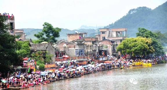 龙舟赛期间,西岸镇群众亲朋满座。