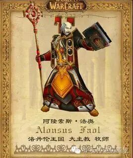洛丹伦王国的大主教,各人类王国所敬仰的人,是图拉杨,弗丁,乌瑟尔,本尼迪塔斯,加文拉德,达索汉六人的师傅,同时也是白银之手的创始人,洛萨一生的好兄弟。