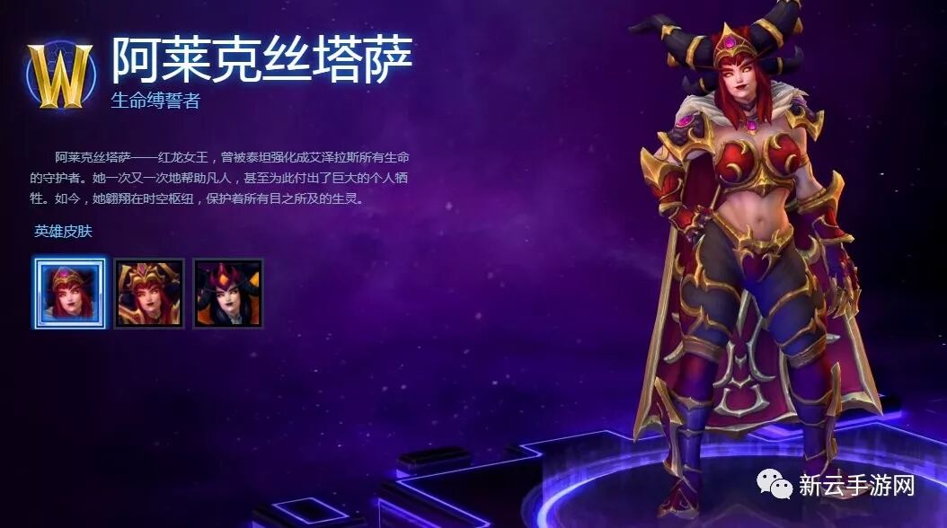 阿莱克丝塔萨,是魔兽系列中,艾泽拉斯世界所有生命的守护者。如今,来到时空枢纽的她依然将作为一名强力的辅助型英雄守护自己的盟友。