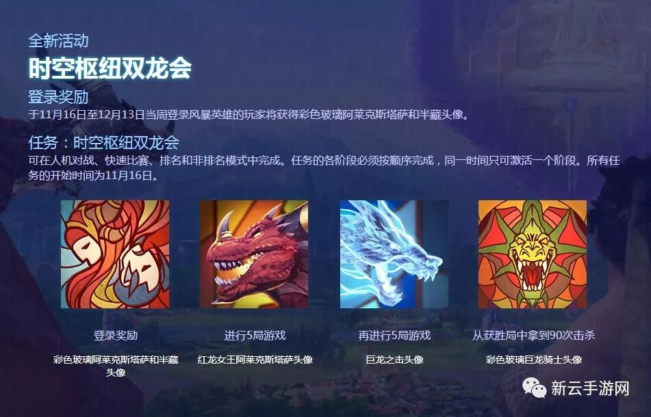 “双龙会”的到来,还带来了一批限定头像奖励。活动将从11月16日开始,持续到12月13日当周。不但登录便有好礼相送,完成相应的任务还能获得更多奖励!