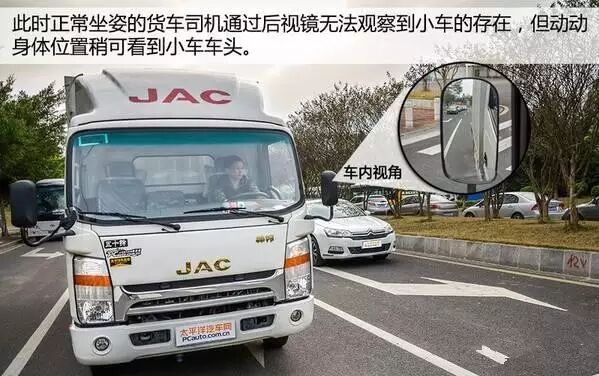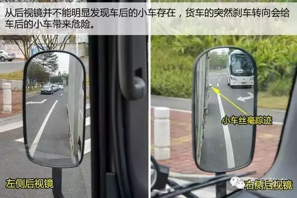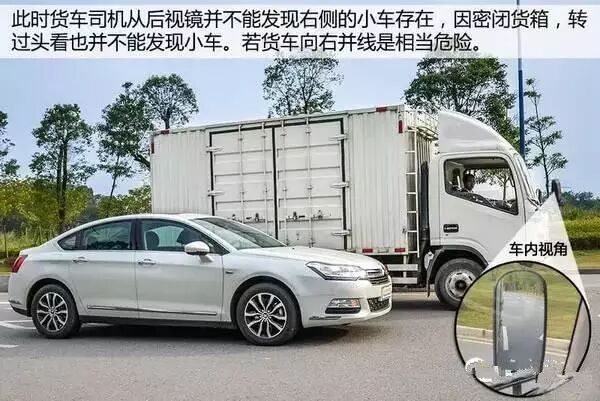 11.货车前方盲区并没有太大,且有镜子可观察盲区。但货车前方危险的是被其尾随,货车制动系统并不是十分好使,随时会有刹不住的危险。