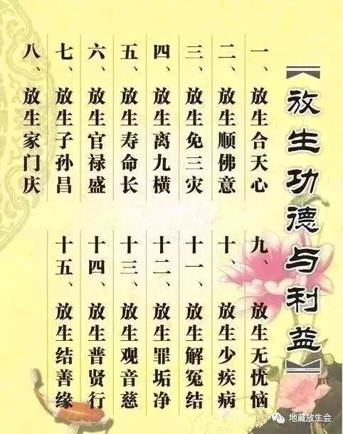 放生免三灾 放生离九横 放生寿命长 放生官禄盛