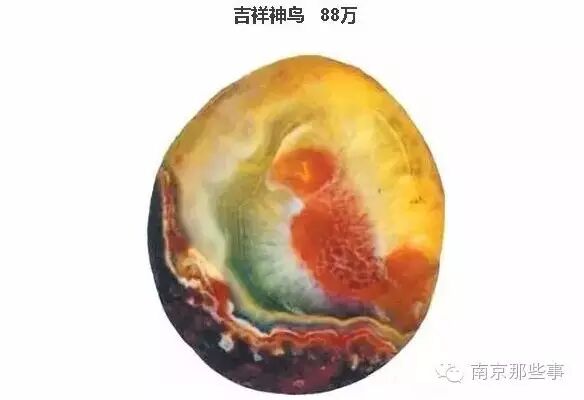 雨花石是南京的特产之一,而这枚叫做“吉祥神鸟”的雨花石在前几年的芳村“奇石根雕展览会”上,更是被定价到88万元!它的主要成分为玛瑙,并含少量蛋白石,其透明度好,质地灵润、光泽柔和,品相极佳。