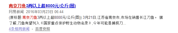 据了解,刀鱼有望列入《国家重点保护野生动物名录》。多种因素影响下,年刀鱼总体价格不断翻倍,在南京水产品市场,曾有3两以上的刀鱼每公斤超过8000元的价格。