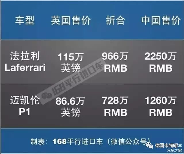 不过,法拉利也有吃排量亏的时候。我们来看一个更极端的例子——“辣法”和P1的中外售价对比: