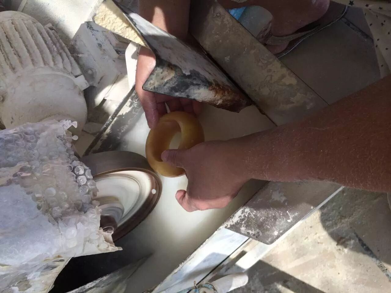 4、整个蜜蜡原石最好平整、规则,不能有坑、矿斑、气泡,只有完美的原石才能制作出完美的手镯。