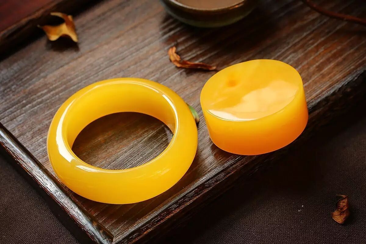 以前的说法是蜜蜡叫“软黄金”,今天黄金的克价已不是能跟蜜蜡相比的了。但是,蜜蜡手串、吊坠、手把件、摆件等随着时间长了,难免有些审美疲劳,其实呀,蜜蜡中有一样物件很少见,那就是蜜蜡手镯,即使有,价格也很贵的。