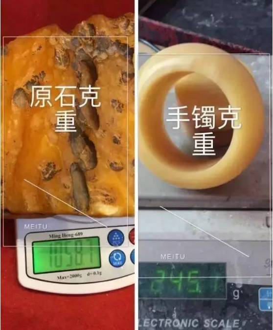 ❶以上是开手镯原石克重图和手镯成品克重图对比!