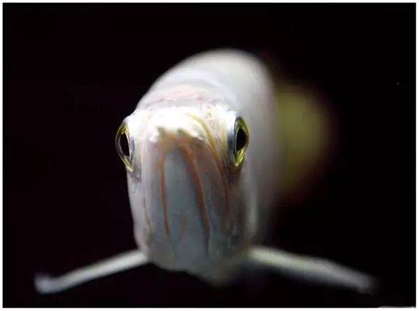 虽然同为白色,但与银龙鱼、雪龙鱼相比,白化红龙更多了一份霸气。深红色的嘴唇搭配通体的雪白,再配以浅黄色的后三鳍做点缀,单是这些色彩便让人倍感和谐、稳重、优雅而又不失活泼。