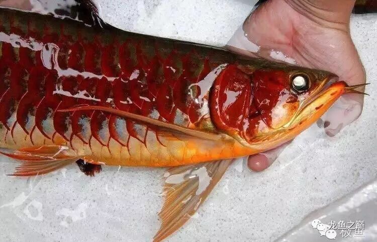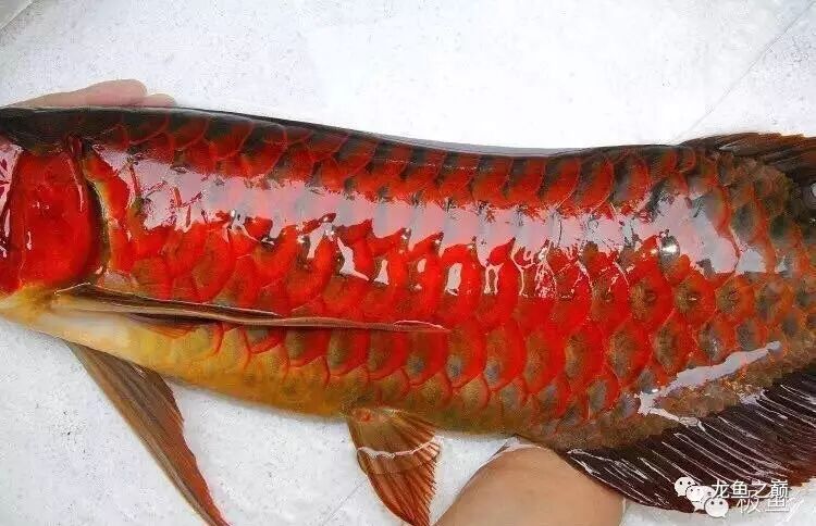 1、此鱼鳞片的反光度带有蓝色雾光,和纯血的红龙鳞片反光质感不同。而正统红龙的高级货色在此阶段鳞片呈现的应是带豆沙青色的喷粉样白金色。