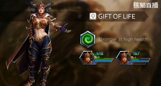 牺牲自身15%当前血量,为指定队友治疗该数值150%的血量,即自身血量越高,奶力越足。变身红龙之后不消耗自身血量且大幅缩短CD。
