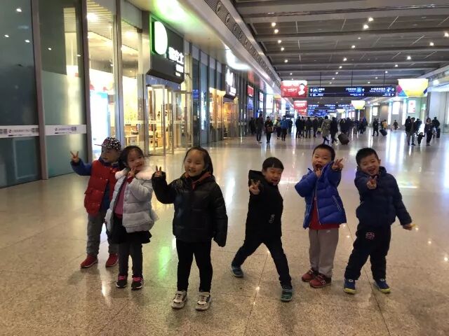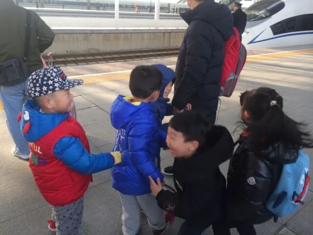 一早,“小向日葵”们就跟着爸爸妈妈一起来赶高铁。“8:35分了,怎么回事,张博炎和肖冉还没有来,要赶不上火车了……”其他四朵“小向日葵”在焦急地等待着……“来啦,来啦……”看着飞奔而来的小伙伴,最后一分钟赶到了,孩子们都欢呼了起来,开心地抱在了一起!出发!