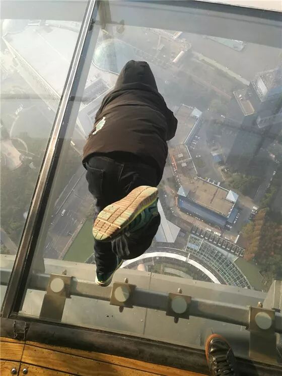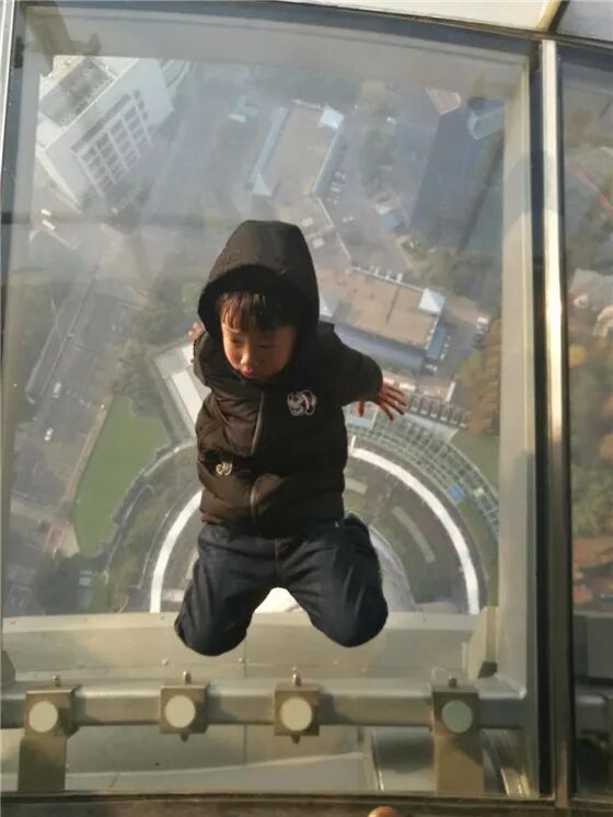 张博炎好厉害啊,一点都不害怕,还在玻璃上跳起了街舞。 哈哈,好小子!