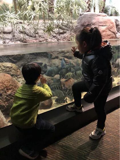 走进美丽神奇的海洋世界,“小向日葵”们都被深深地吸引住了。“原来《海底小纵队》里的马蹄蟹艇是这个样子的!”“海龙这么小呀,我还以为是很大很长的鱼呢!”“哇,有条鲨鱼从我的头上游过!”……