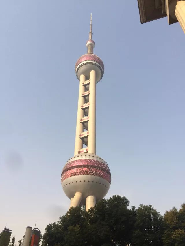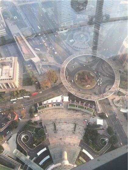 一路直上,进入东方明珠塔的最高层——太空舱,放眼望去,大上海的美景尽收眼底。黄浦江像一条银色的丝带在阳光下闪闪发光,高耸入云的环球金融中心近在咫尺,路上的汽车像模型玩具,整个城市的一切都像是玩具里的过家家……“咔嚓、咔嚓”大家都纷纷举起相机记录下眼前的美景!