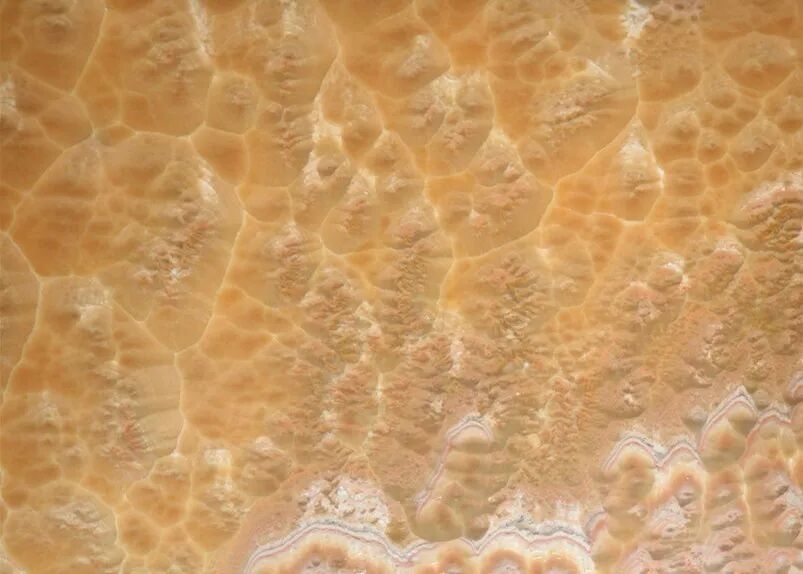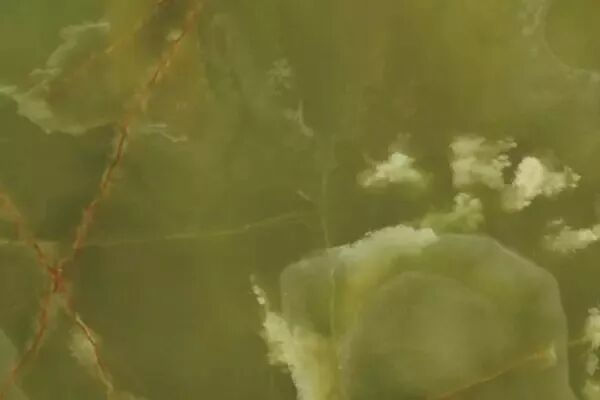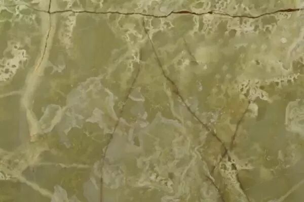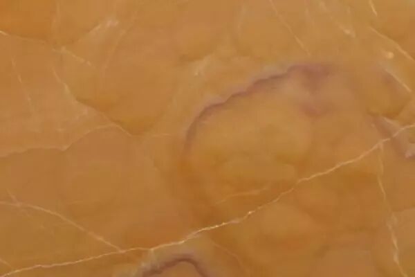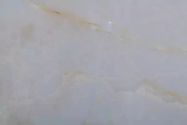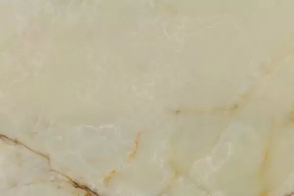 产自伊朗,底色呈乳白色,透白色,黄线黄纹较多,裂纹较多,无孔洞,石质细腻,通透性强