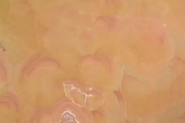 产自墨西哥,浅黄色底色,带有深浅丌一的红色朵状纹理,部分参杂白色朵状纹理。裂纹少,细小孔洞较多,石质较红龙玉更为粗疏,通透性好。