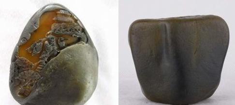 台山乌鸦皮皮黑,即象乌鸦的黑色一样的玉石皮壳,上品的台山乌鸦皮玉石皮壳深黑细薄,品相及水冲度极好,用电筒可透过局部黑色皮壳照到玉肉。乌鸦皮玉石玉肉色彩艳丽纯正,以黄、红为主色调,也有黄红混色,黄白混色等,玉肉温润,凝练,洁净,具有耐热、耐冷、耐光、耐腐蚀等特点。台山乌鸦皮石个头适中,大都在半斤到三斤之间,比较适宜于创作中小摆件作品。