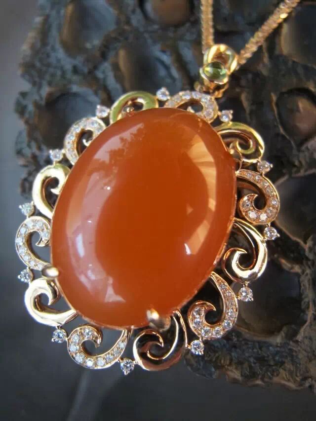 南红玛瑙非常温润、油性,实际上已近似于和田籽料红玉,尽管我们基本看不到和田红玉。南红玛瑙的“油润”与普通玛瑙的“滑润”有明显的区别。特别是一种稀有的冰纹南红玛瑙非常美丽动人。