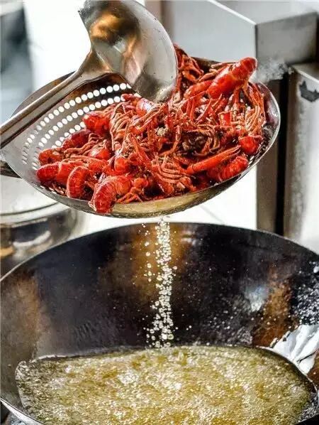 选大个头的活蹦乱跳的新鲜小龙虾,流水洗刷八遍。小锅将虾油炸至鲜嫩,熬煮24小时的高汤,配以36种中草药和秘制酱料炒制。
