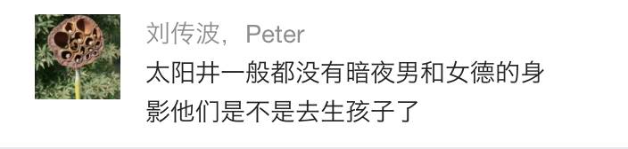 刘传波:太阳井一般都没有暗夜男和女德的身影他们是不是去生孩子了?