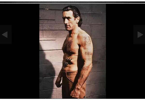 马丁史考西斯和劳伯狄尼洛的黄金搭档作品《恐怖角》当中的角色麦克斯,全身上下的刺青极为显眼,突显了这个角色的个性。