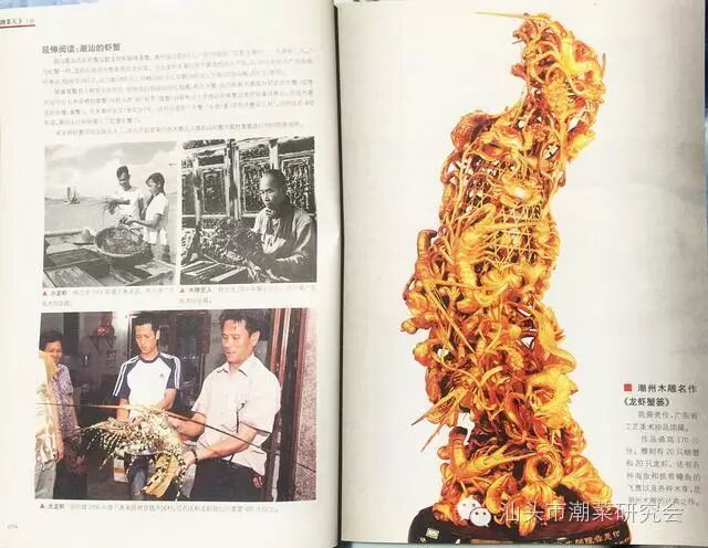 相反在出产龙虾的潮州,地方志书大都提到了龙虾,多说其“龙头虾身,长须有壳”。其中嘉庆《澄海县志》记载最详,说“海虾长二三尺,须长数尺,也曰龙虾。土人蜕壳置灯其中,望之似龙形……有商舶见波中双樯遥漾,高可十余丈,意其为舟,乃海虾乘霁曝双须是也。”原来古时候潮州人会将龙虾肉吃了,将龙虾壳做成龙虾灯!因为潮汕的南澳、靖海等地出产的龙虾多为色彩斑斓的锦绣龙虾,用以做灯,想必比冰心女士笔下的小桔灯更加醒目好玩。这锦绣龙虾我只见过10斤左右的,志书所记那种两须如桅樯的超级大龙虾,大概只是古人的幻想而已。顺便提一下,我写的《潮菜天下》下册封面,用的正是锦绣龙虾的特写照片,有红、黑、黄、蓝、紫五色相间,常有读者误认为是加了什么电脑特效。