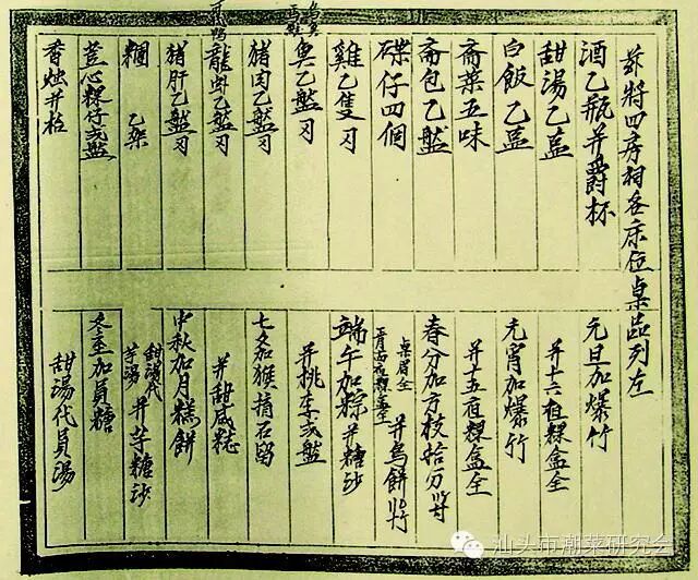 清代潮阳沙陇郑氏族谱中保留有一份宗族祭祀的清单,里面罗列了各种食物的名称,其中龙虾一项注明可以用鸭代替。由于供品通常需要保留全形,如全鸡和全鱼,因此可以推断潮人用于祭祀的龙虾必然是“龙虾饭”做法,即用蒸或煮的方法烹饪全虾。在今天,用龙虾、红蟹和各种海鱼制成的“潮州打冷”正风靡全国,龙虾饭或冻龙虾在各种食肆出尽风头,究其根源,不过是流传久远的潮州民间食俗而已。