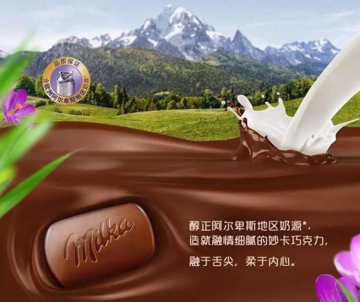 Milka的名字由德语”MILch(牛奶)”和“KAkao(可可)”组合而成,标志性的紫色包装和经典的紫色奶牛形象代表着妙卡。