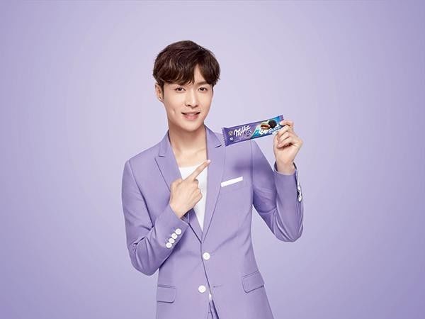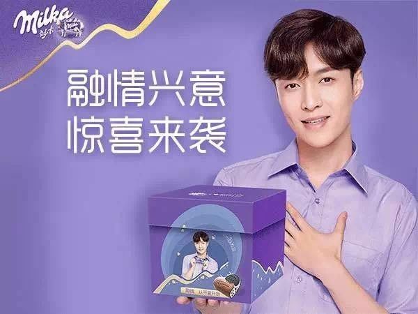 也许正因为张艺兴很适合紫色,所以他不仅有不少紫色的造型,紫色的粉丝应援色,连代言都是紫色的妙卡巧克力。