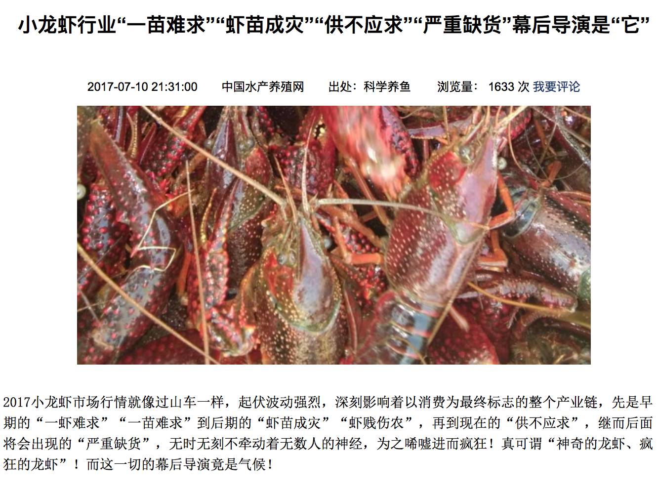 稻田虾上市将拉低价格