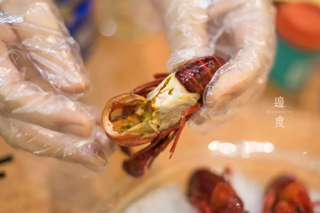 边度君还推荐一种懒人吃法:先吮外壳,感受虾鲜与草本味的混合滋味;再嚼碎头部,让虾黄、肉膏、脆壳、卤汁在口腔里妙趣杂合。