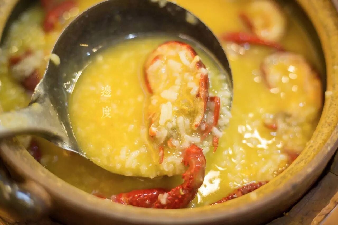 店家将10只龙虾开边对剖,虾膏爆汁溢出,黄浆包裹米粒。经过30分钟的熬制,浓粥便糅合出类似烘焙味的坚果香。这份暖鲜微咸,特别受到老人家和小孩子的喜欢。