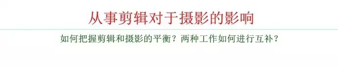 王育萌:可能是你个人把握的剪辑与摄影的平衡比较好,这也许对于一般人难以驾驭。这方面您能不能聊聊,就是说剪辑的这些东西,会对你前期的摄影工作,有什么帮助吗?