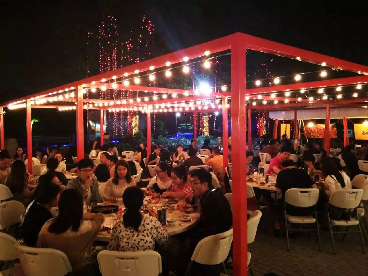 户外场地分有遮阳篷和完全暴露在外没有遮阳篷两种。既然是吃小龙虾,当然是选择露天的啊!有情调!有氛围!听说这个800m²的场地是老板耗巨资打造,却任性只开4个月!