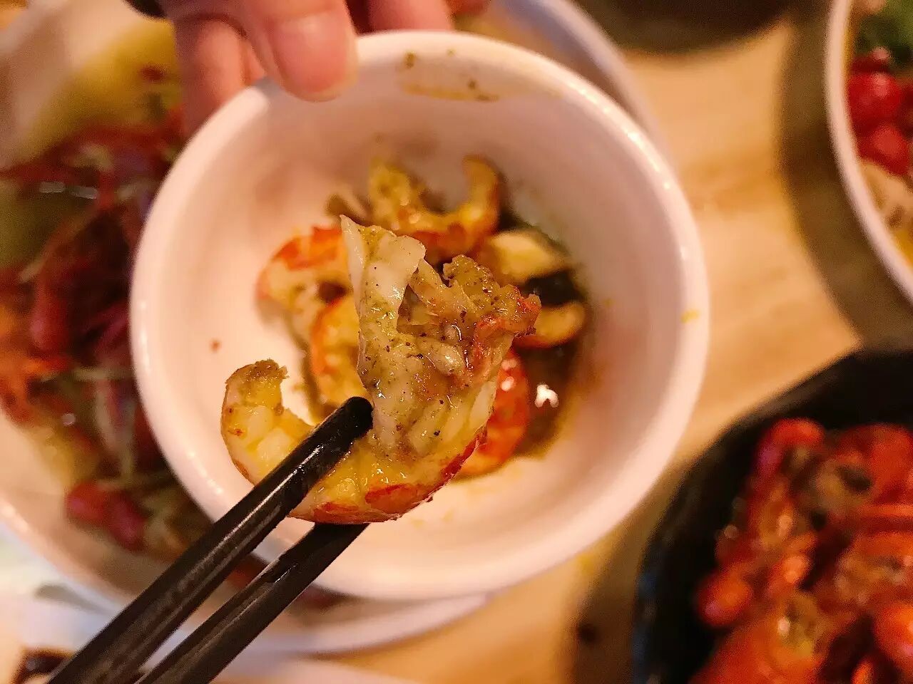 第二家分店与第一家店的不同在于,这里的龙虾都是不抽线的。这样保证了龙虾的肉质不松散,口感会更紧致Q弹,这一改进,很是受好评。冷卤龙虾是冷盘,味道偏辣,满眼的红色,很是开胃!