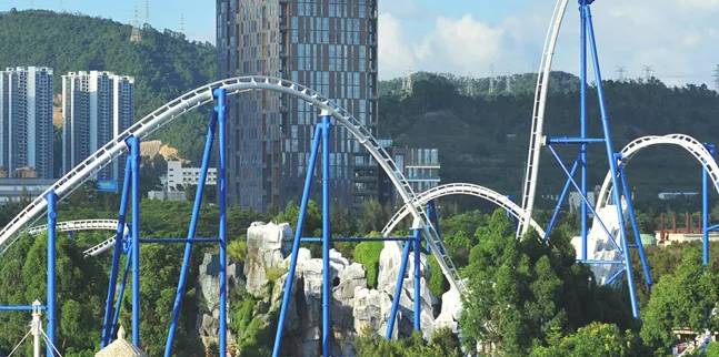 这里有一飞冲天的太空梭,也有爱意满满的情人园,郁郁葱葱的冒险山,居高临下的冒险境地,充满了无限的挑战与温情。