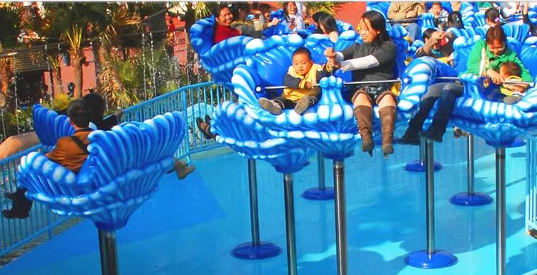 浪花形状的座椅,如音乐喷泉一般,跟随着音乐节拍上下跳动,左右旋转。