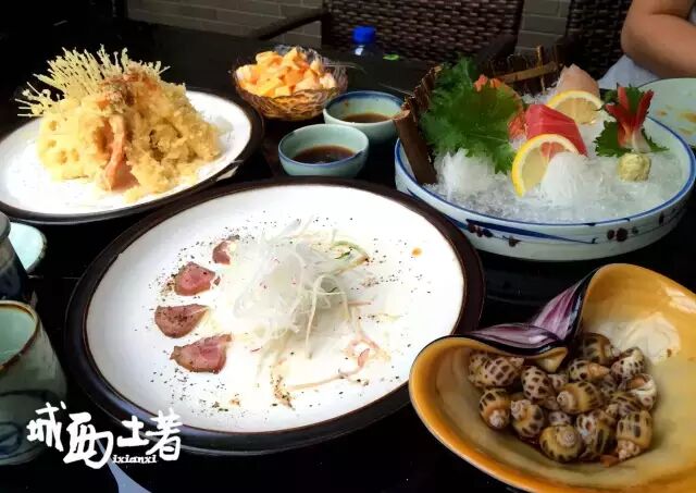 首先引起土著哥注意的是店里的环境,进门左手边是吧台和包间,各种小帘子和摆在台子上的酒瓶很有和风的感觉。右边是一个纯玻璃搭建的全透明房子,视野很好,光线也很好,白纸糊成的灯特别有情调。穿过玻璃房是个露天阳台,摆了三张桌子,可以远远的忘向二环路,在这吃饭简直是种享受。落座后菜上的不算快,等了好久才端上来一小碟赠送的莲菜丁。它虽然看着不起眼,但确实非常酸辣开胃。主菜的第一道土著哥还真忘了叫什么名字,只记得是原盘子上摆了一圈嫩嫩的牛肉,沾着醋食用。紧接着端上的是泰汁腌花螺,一碗洗的干干净净的花螺,泡在汤汁里,特别有嚼头,后味还会有微微的辣味。吃完这两个菜后,上菜的速度开始让人吃惊,10分钟的功夫,菜竟然基本都上齐了,桌子满到摆不下!油炸天妇罗是土著哥吃日料时必点的一道菜,它家的味道也很正宗,只是外皮不够酥松。冰淇淋寿司是土著哥比较喜欢的一样菜品,就是把传统的寿司里面的内容换成了冰淇淋。这道菜的优点和缺点都很明显,优点是冰淇淋的味道非常浓醇,而不足的地方是外面的米略硬。蟹籽沙律卷的味道中规中矩,没有留下非常深刻的印象。紧接着要介绍一下鳕鱼烧,分量适中。刚吃第一口的时候觉得味道没有特别的地方,但是当朋友把柠檬汁挤在鳕鱼肉上之后,味道瞬间被激发、提升。鱼肉香嫩,咸香适中。鹅肝鱼子酱蒸蛋就是妈妈牌的蒸鸡蛋加上了鱼子酱。口味清新,简单又能让人回味。秋刀鱼这个品种土著哥不喜欢,所以也不评价这里的味道。最后两个开胃解腻菜是芒果鲜虾和辣白菜火锅。芒果鲜虾适合妹子,辣白菜火锅里面菜多肉少,但是分量确实不小,蘑菇、金针菇、辣白的等菜色较为丰富。汤真的非常开胃。团购的套餐里还有一壶清酒,小酌几杯挺不错。虽然良品创意料理不能算特别完美,但是无论味道、环境、还是价格,性价比总的来说真的很高。可能是因为老板太忙的缘故,所以没有过多交流。土著哥觉得,这是一家不错的店,适合带约会、更适合聚餐。推荐给大家!团购:代金券69代100 / 2人餐118 / 4人餐228地址:高新三路财富中心对面海佳云顶A座2603(高新海底捞后面的高层)