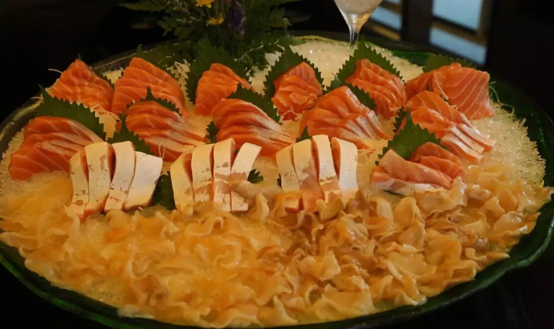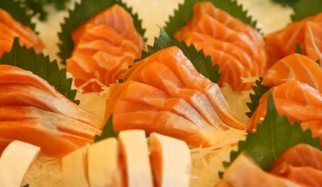 三文鱼是世界名贵鱼类之一。鳞小刺少,肉色橙红,肉质细嫩鲜美,口感爽滑,既可直接生食,又能烹制菜肴,是深受人们喜爱的鱼类。